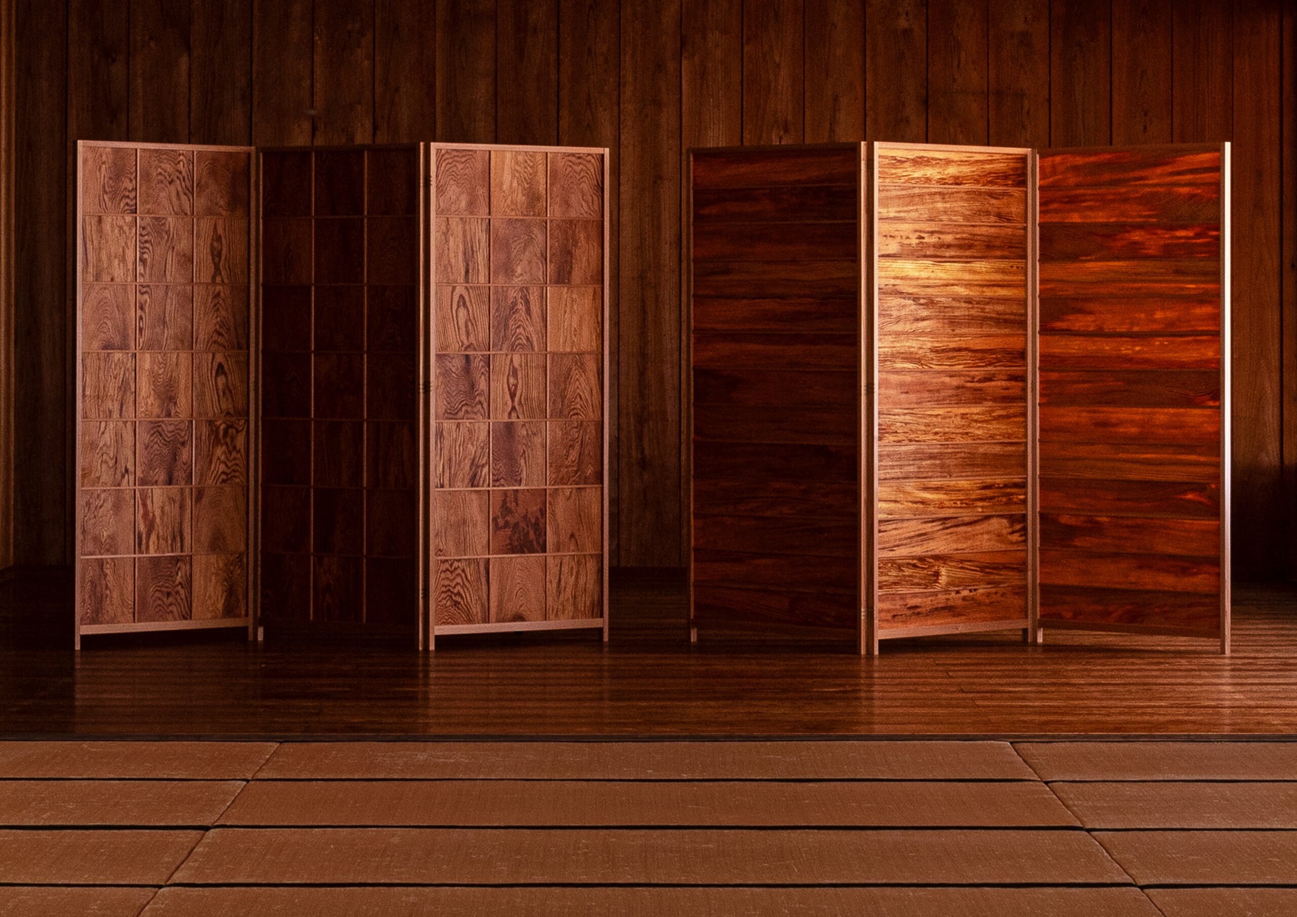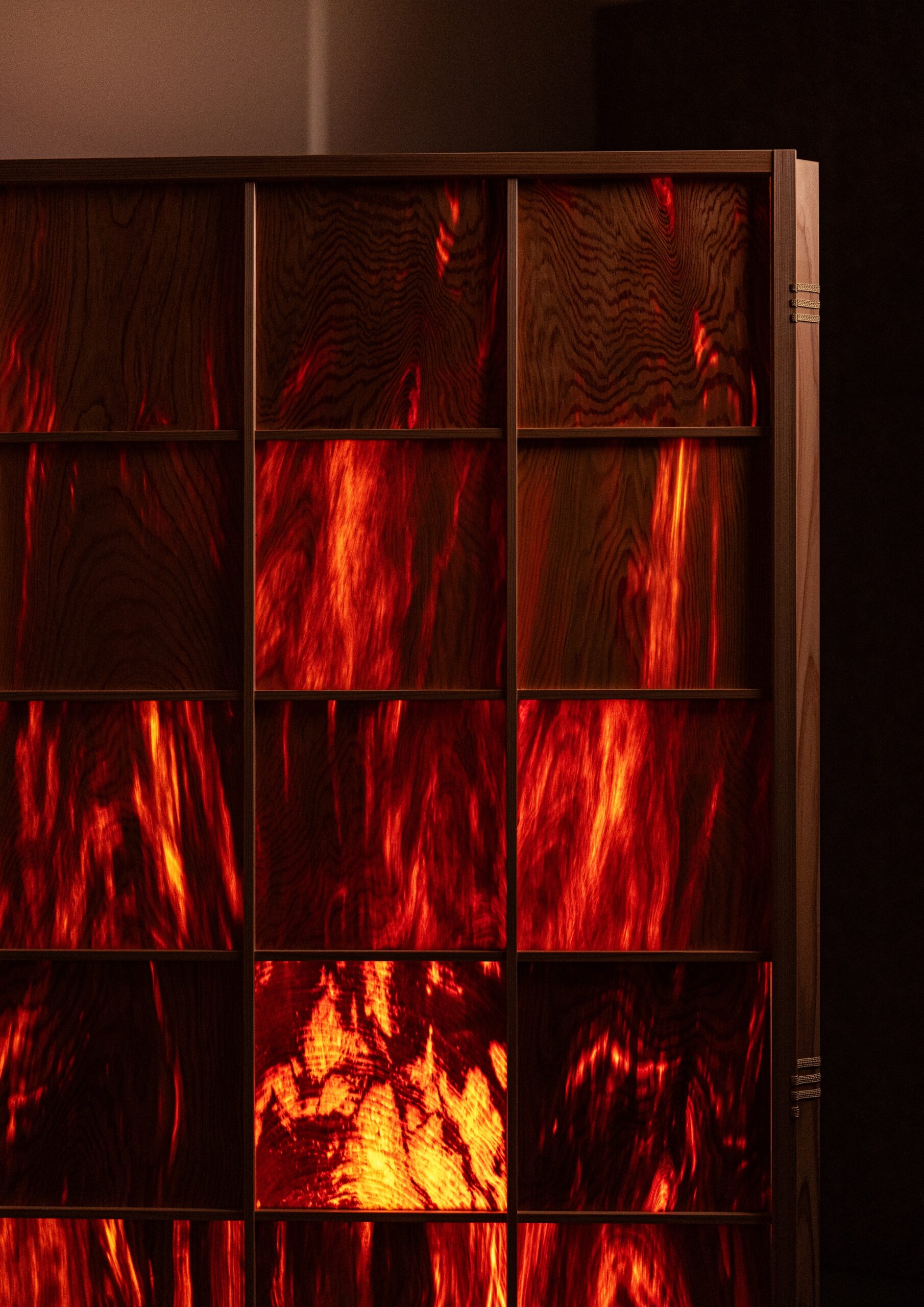 When Fat Wood Byobu catches light, it glows red and becomes transparent.